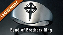 In the Band of Brothers' Ministry, many brothers use the Band of Brothers’ Ring to serve as a monument and reminder of our covenant to follow Him – "no matter the cost!" We then band together and go out into the world, using our individual gifts, "our own inheritance," in a unified effort to glorify the Father, the Son, and the Holy Spirit.